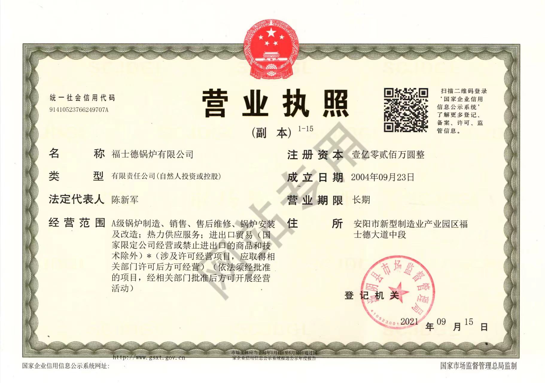 福士德鍋爐是一家專業研發、制造節能環保鍋爐的國家高新技術企業,作為打造節能環保鍋爐的福士德鍋爐擁有標準的現代化生產基地,自動化鍋爐生產設備;公司注冊資金1.02億元,現為國家A級鍋爐、D1D2壓力容器制造單位,擁有安裝改造維修資質,通過了ISO9001質量管理體系、ISO14001環境管理體系、OHSAS18001職業健康安全管理體系認證,榮獲《國家工業節能技術裝備推薦目錄》及《“能效之星”產品目錄》,擁有專業的技術及精湛的工藝。...